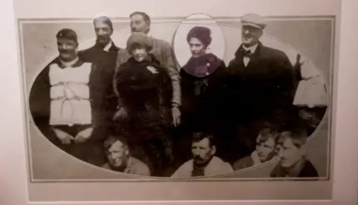 لورا میبل (تصویر میں جس کے گرد سرکل بنا ہے) لائف بوٹ میں سوار مسافروں کے ساتھ / فوٹو بشکریہ ہنری ایلڈرج اینڈ سن